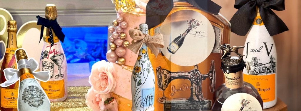 Hand painted bottles are unique gifts for special celebrations. Visit the Fees and Gallery Pages to decide what works best for the event and budget. Allow 2 weeks for a custom bottle.
